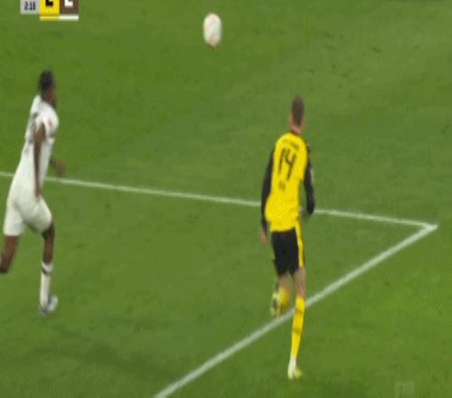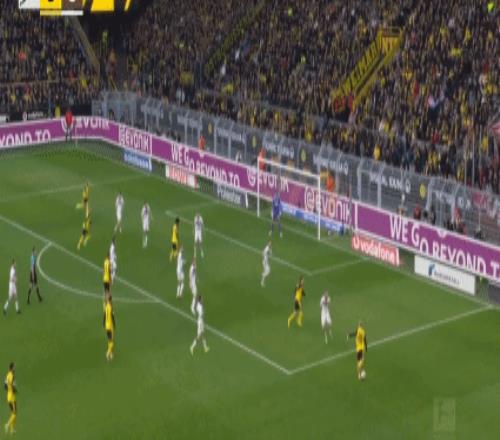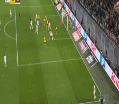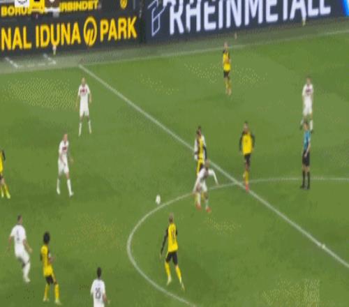 第45+1分钟,阿德耶米突破传中,布兰特破门,多特1-0圣保利