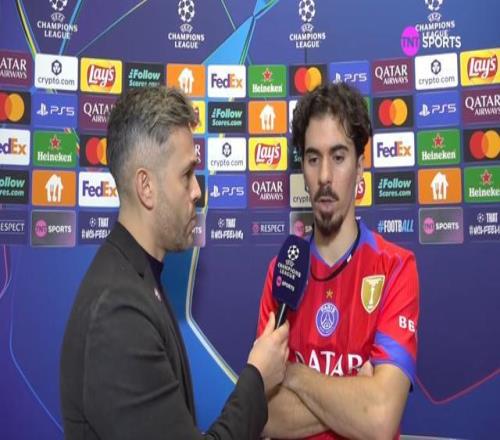 欧冠联赛阶段第7轮,葡萄牙体育2-1战胜巴黎,赛后巴黎中场维蒂尼亚接受了TNT体育墨西哥频道的采访。